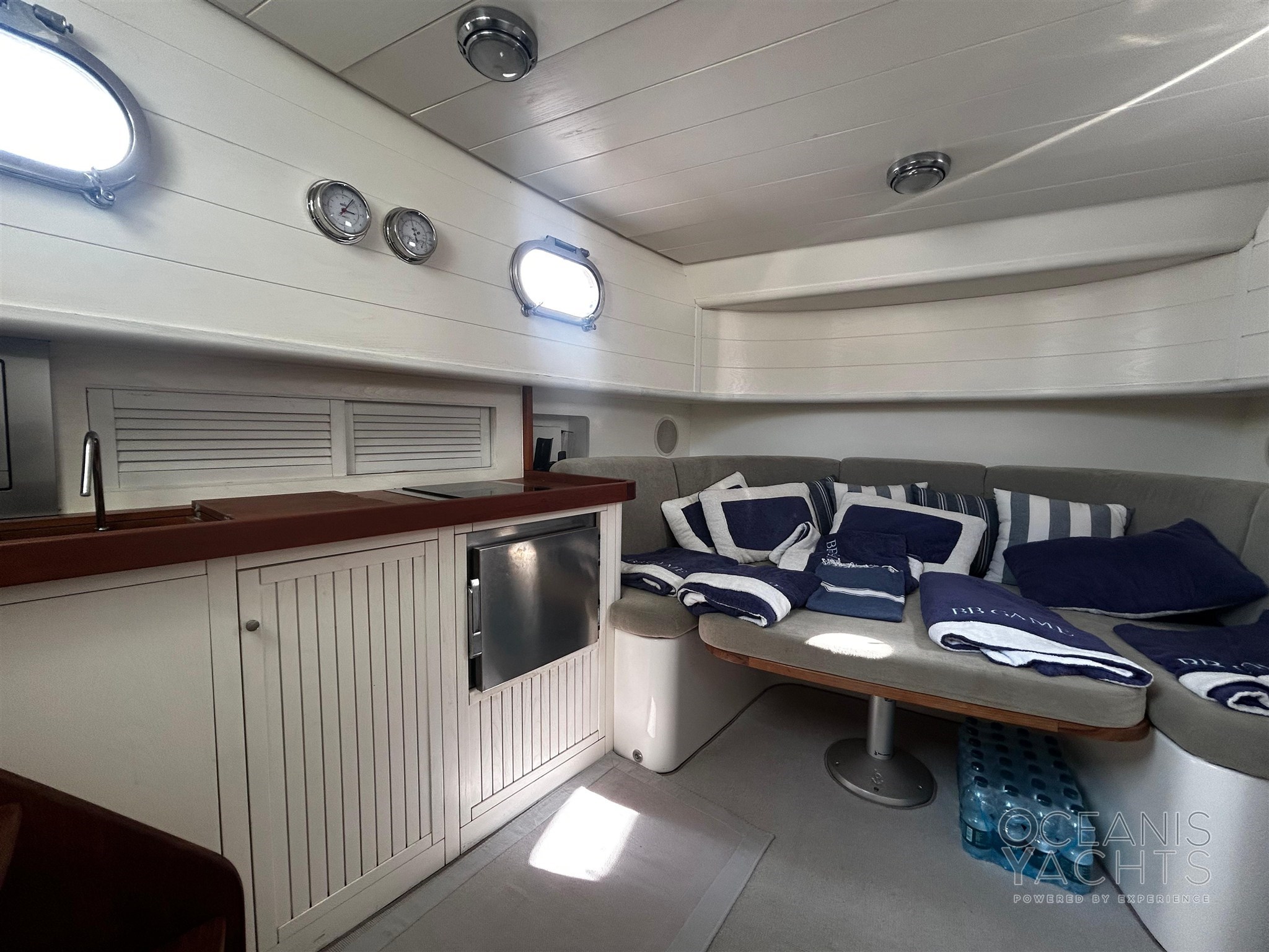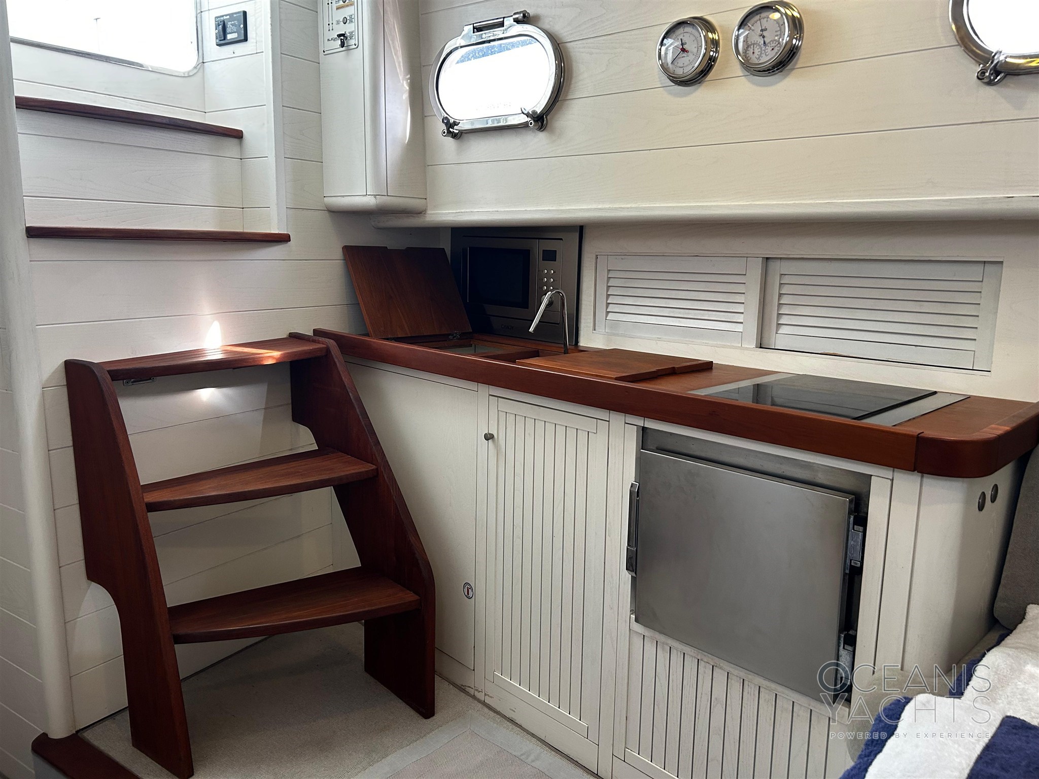BBQ/ Grill, Clima reversibile, Indicatore del serbatoio del carburante, Indicatore del Serbatoio dell’Acqua, Indicatore della temperatura del motore, Pavimento interno in legno, Prese interne 12v, Prese interne 220v, WC marino elettrico.