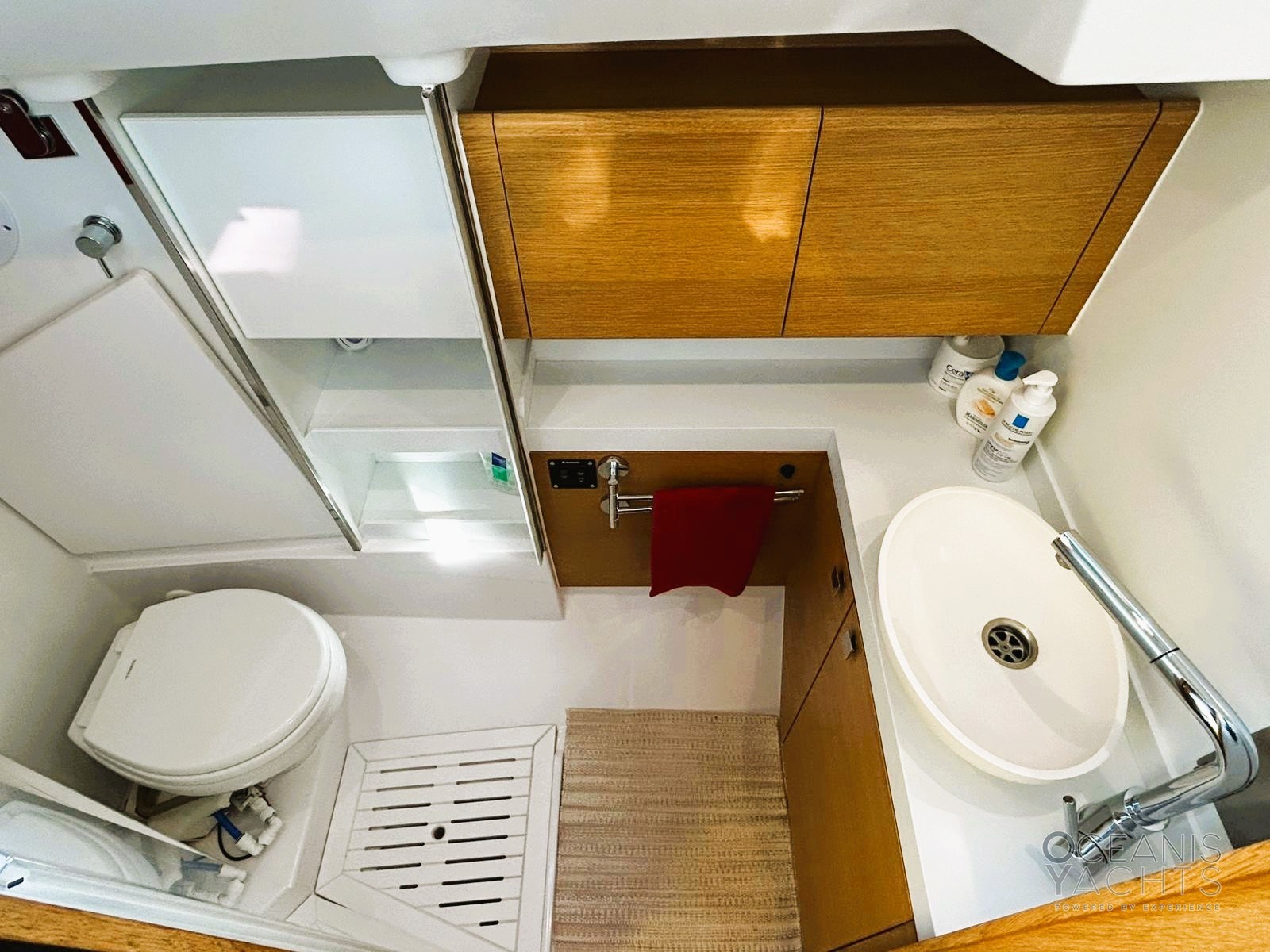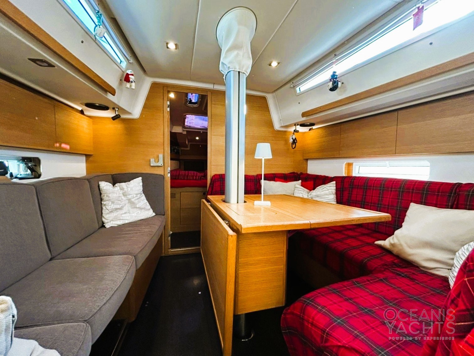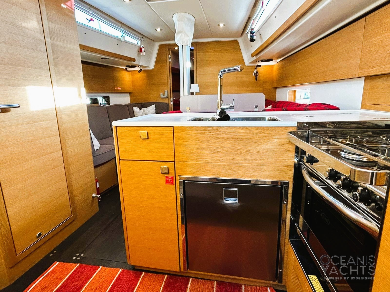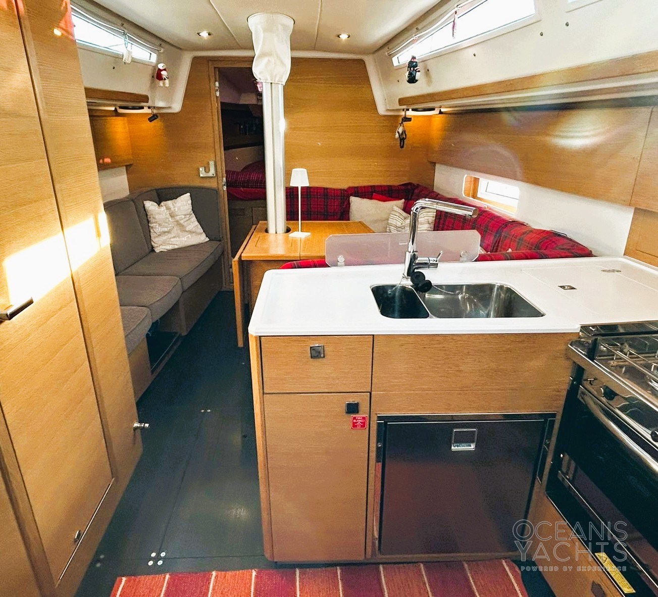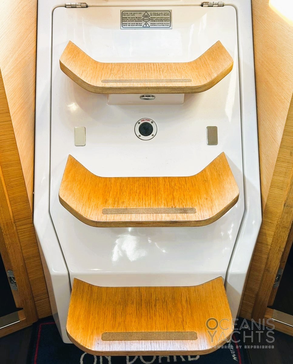Boiler, Impianto acque nere, Indicatore del serbatoio del carburante, Indicatore del Serbatoio dell’Acqua, Indicatore della temperatura del motore, Pavimento interno in legno, Prese interne 12v, Prese interne 220v, Riscaldamento (webasto), Serbatoio Acque Nere, WC marino elettrico.