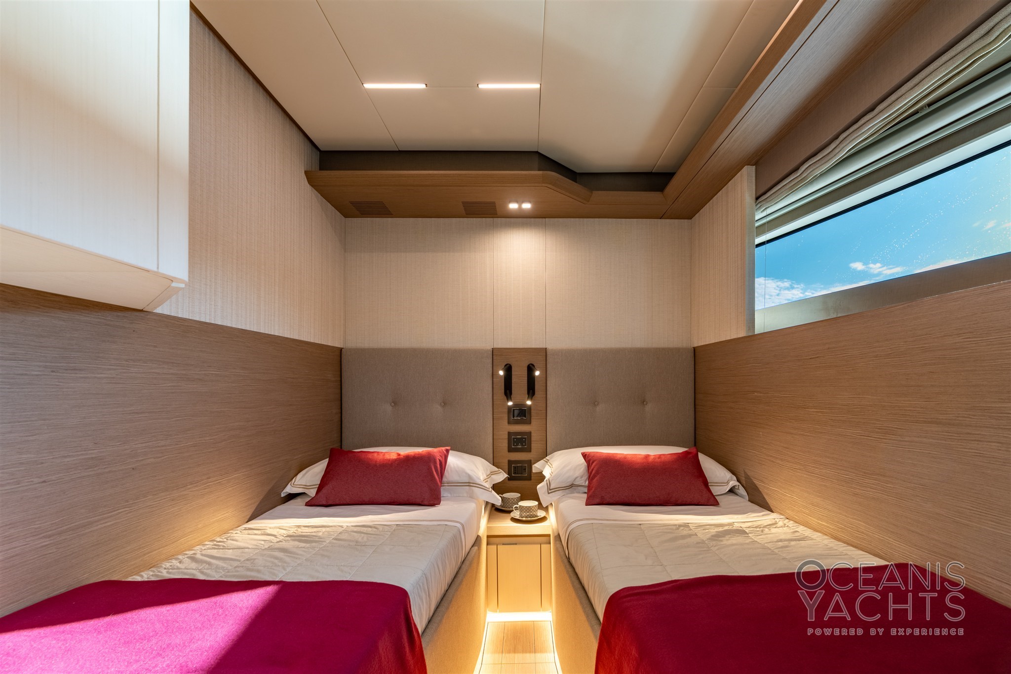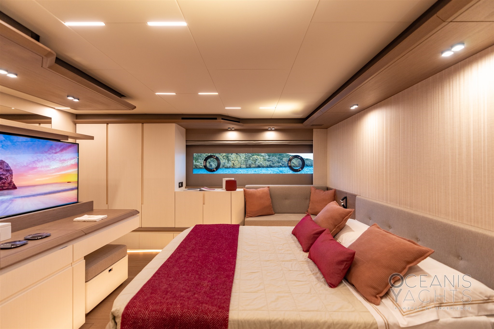 BBQ/ Grill, Boiler, Cassaforte, Clima reversibile, Collegamento internet, Dimmer per Luci, Dissalatore (200 lt/h), Impianto acque nere, Indicatore del serbatoio del carburante, Indicatore del Serbatoio delle Acque Reflue, Pavimento interno in legno, Prese interne 12v, Prese interne 220v, Serbatoio Acque Nere, 4 WC marino elettrico.