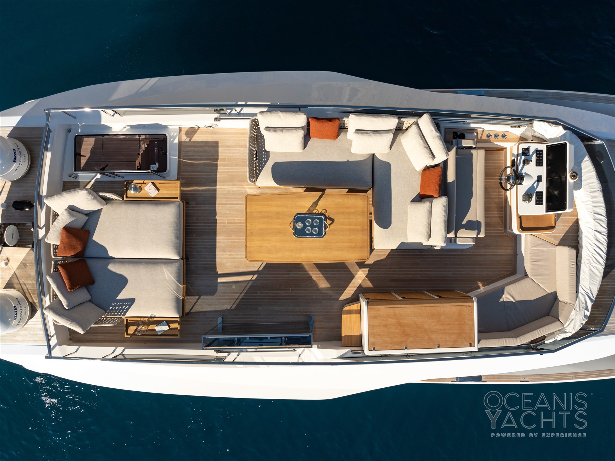 AIS, Antenna radar, Comando motori elettronico, Computer di bordo, Contametri catena, 3 Joystick, 4 Plotter, Sistema di posizionamento dinamico.