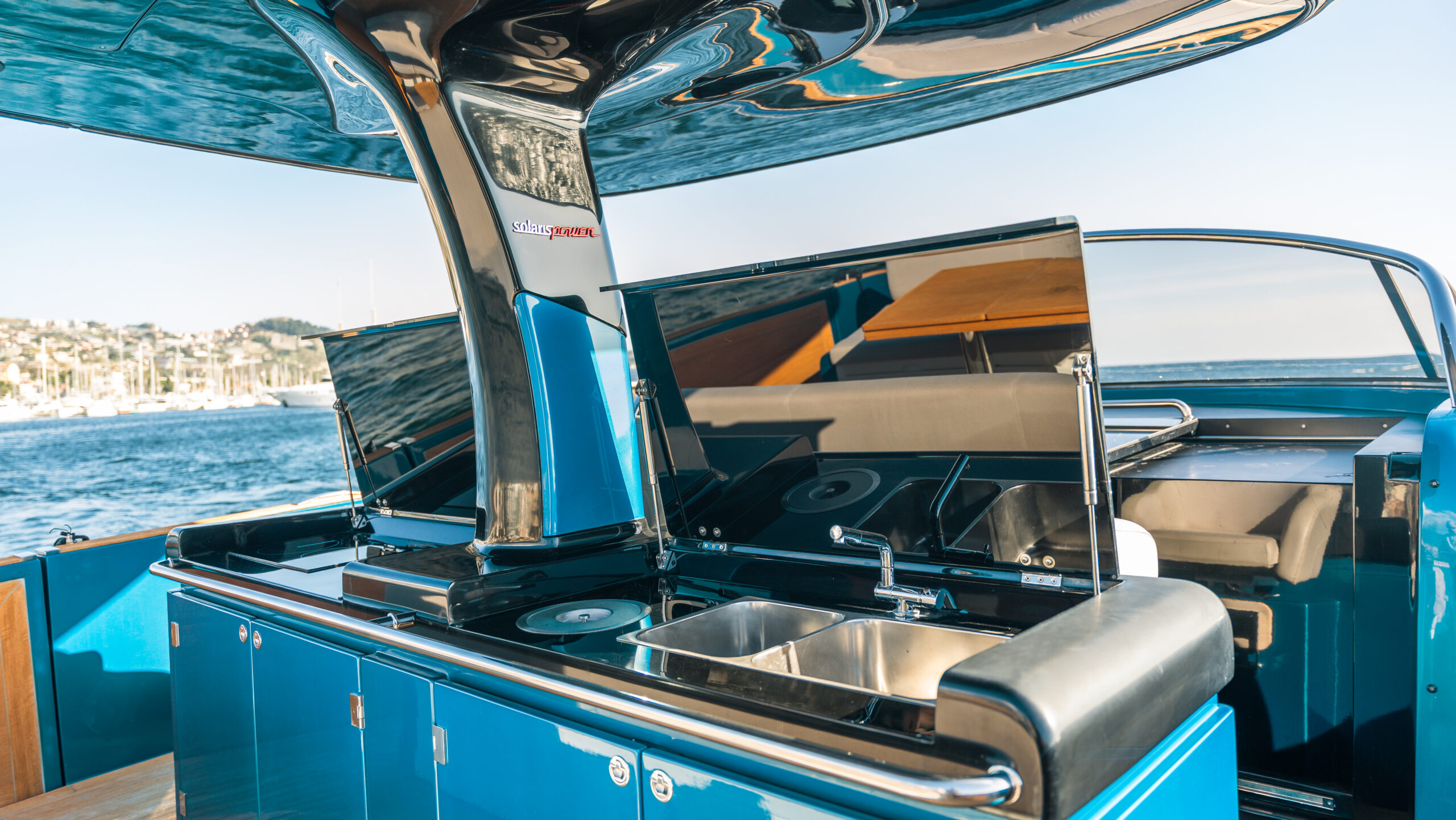 Bitte Abbattibili, Cavo corrente di banchina, Colorazione speciale, Doccia esterna, Garage per tender, Luci di cortesia, Luci subacquee, Parabordi, Passerella, Ponte in teak, Pozzetto Teak, Tavolo pozzetto, Tender, T-Top.